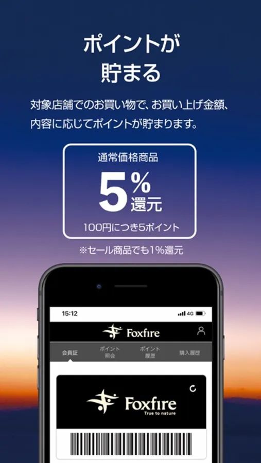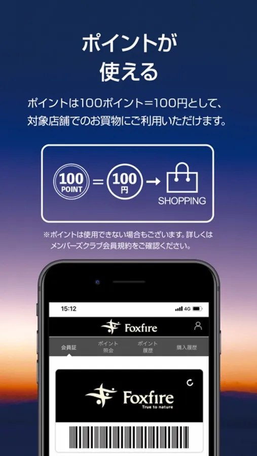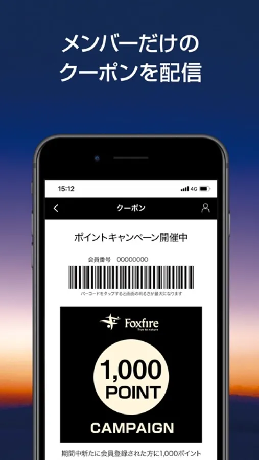 「Foxfire」アプリは、対象店舗でのお買い物でポイントが貯まるメンバーズカードとしてご利用いただけるだけでなく、最新のお知らせや、お得なクーポンなどが配信されるアプリです。