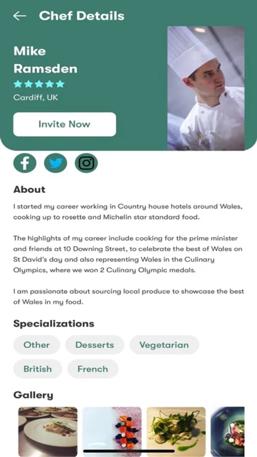 The Be Our Chef app includes a search function, to find chefs local to you and check out their profile and reviews. It also includes a full booking and secure payment function and calendar to keep track of your bookings. You can also chat direct with your chef using the messaging feature.