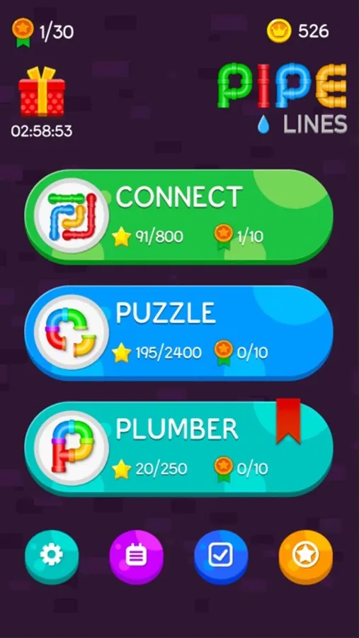 “PIPE LINES PUZZLE” merged best games into ONE game collection, like CONNECT, PUZZLE, PLUMBER, which are easy and amazing to play.