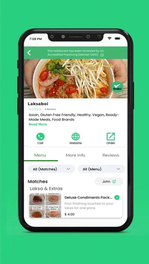 ● Exact menu breakdown – When users click on the restaurant, Foodini shows them an exact breakdown of what they can and can’t eat on each menu.