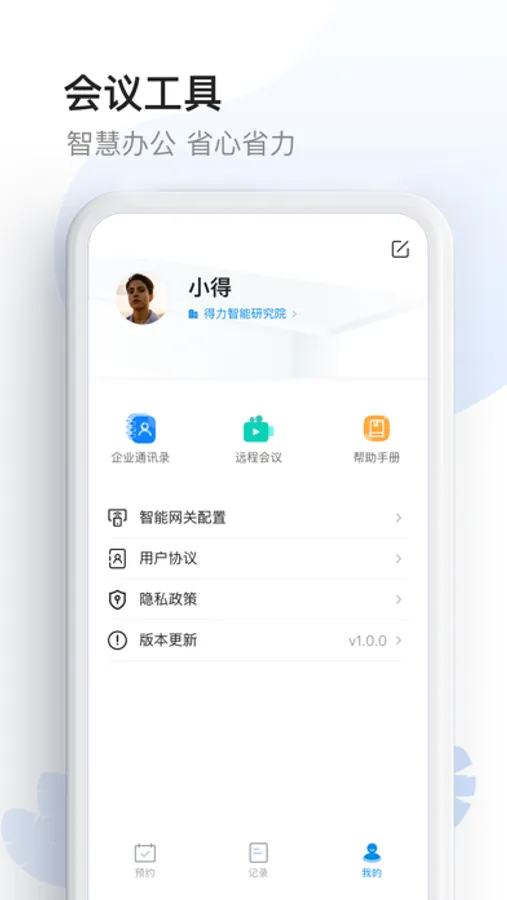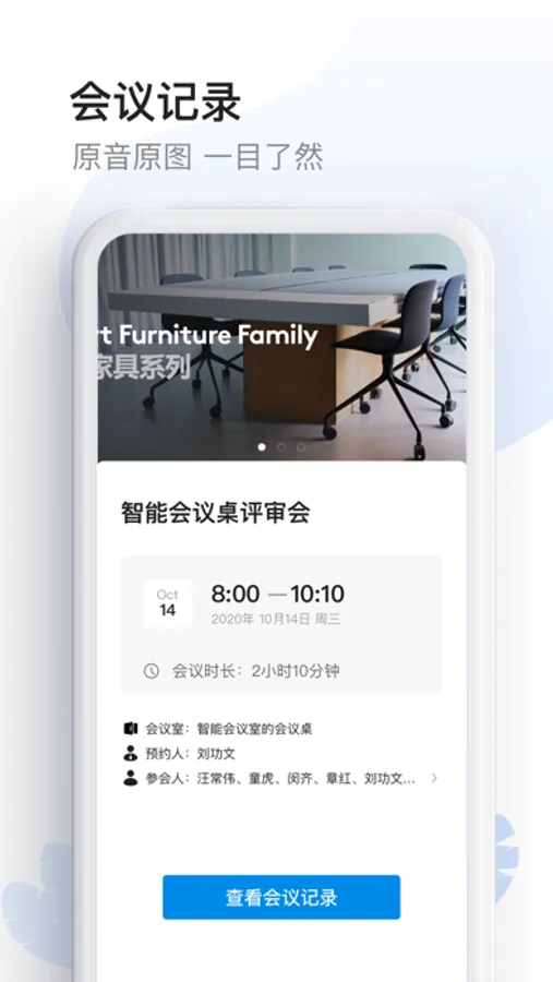 “智能会议桌”是应用于得力普乐士品牌下智能会议桌设备的APP,结合企业会议场景,提供会议记录、会议预约、实时翻译、设备控制等功能,为商务接待、会议洽谈提供完备的智能会议解决方案。