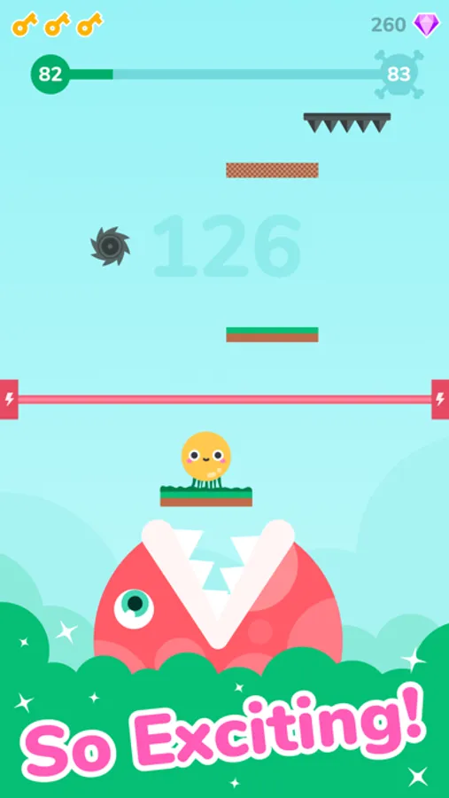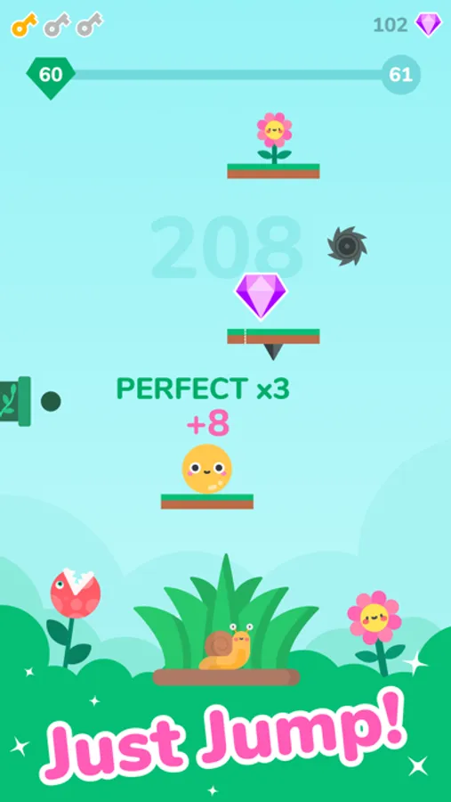 To get the flowers at the top, the brave little ball needs to overcome the difficulties and obstacles all the way by jumping up and up!