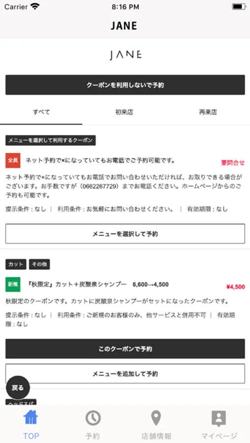 お得なクーポンが配信されます。ネット予約時にクーポン利用での予約も可能なので来店時もスムーズに施術頂けます。