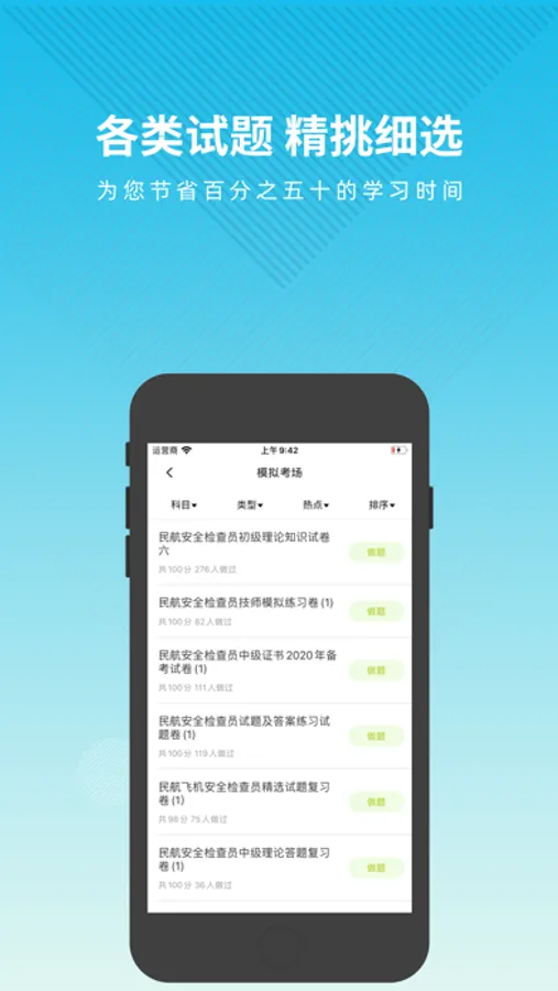 民航安全检查员题库APP是一个针对民航安全检查员考试的题库软件,涵盖了该考试热点、难点和常考点的考试模拟题库,是您学习和拿高分的好帮手。