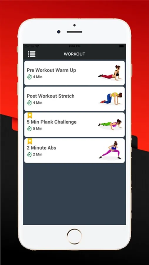 - You can see special workout from the side menu. You can select Pre workout warm up, post workout stretch, 5 min plank challenge, 2 minute abs.