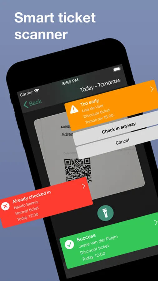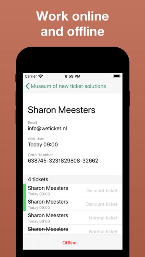 After you have reinstalled the app it is possible to start checking in tickets. If you work without the Internet, then all your actions will be synchronised the moment you are connected to the Internet again.