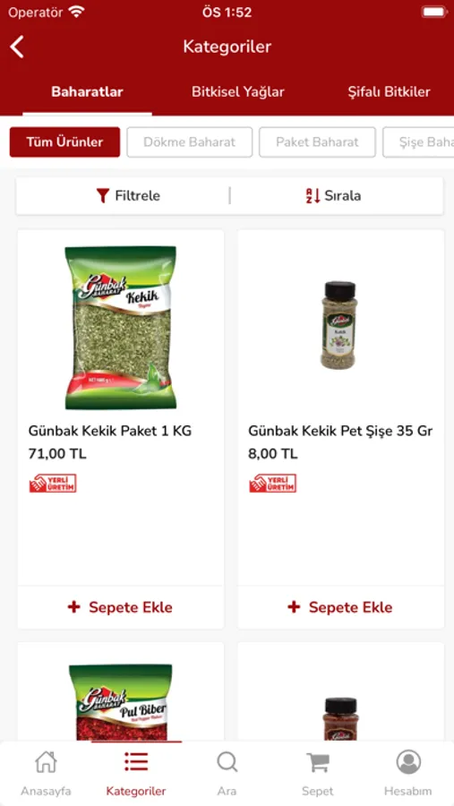 * Ürün kategorilerinde filtreleme yapabilirsiniz