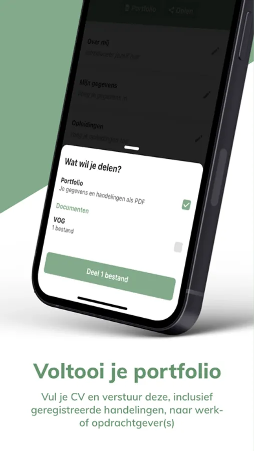 - Upload je diploma's en certificaten, inclusief bewijslast, direct in je portfolio