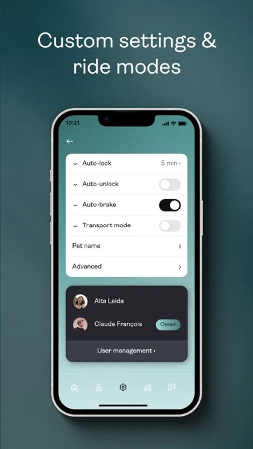 Our custom app allows you to be in full control and always keep an eye on your Äike’s location, security, settings and status whenever you want from anywhere in the world.