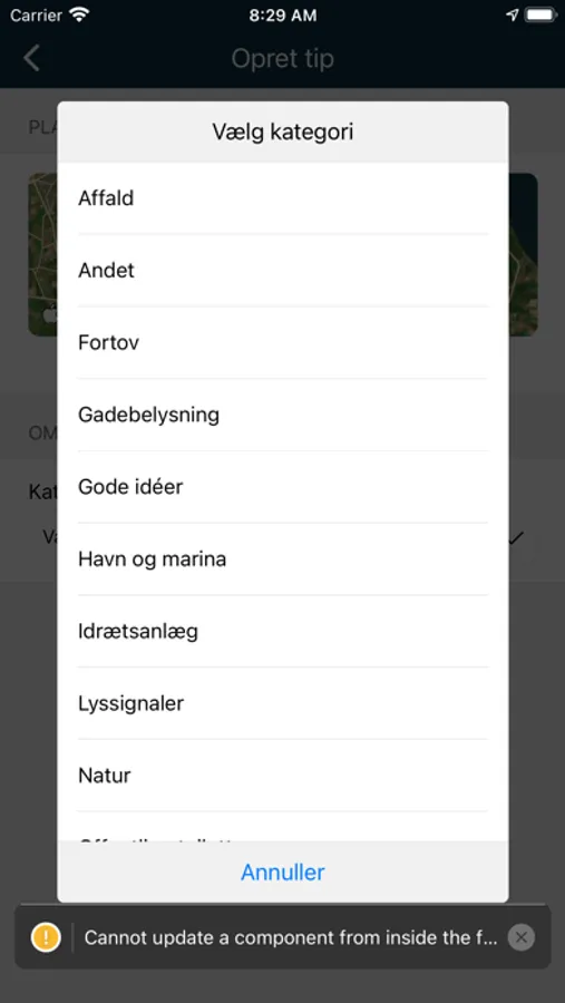 Beskriv eventuelt problemet i tekstfeltet, og tilføj billeder via kameraikonet. Tilføj gerne flere billeder.