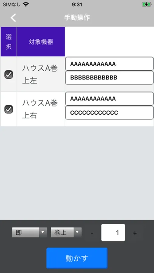 このアプリでは、ハウスカーテンや灌水弁の制御を手動で実行できます。
