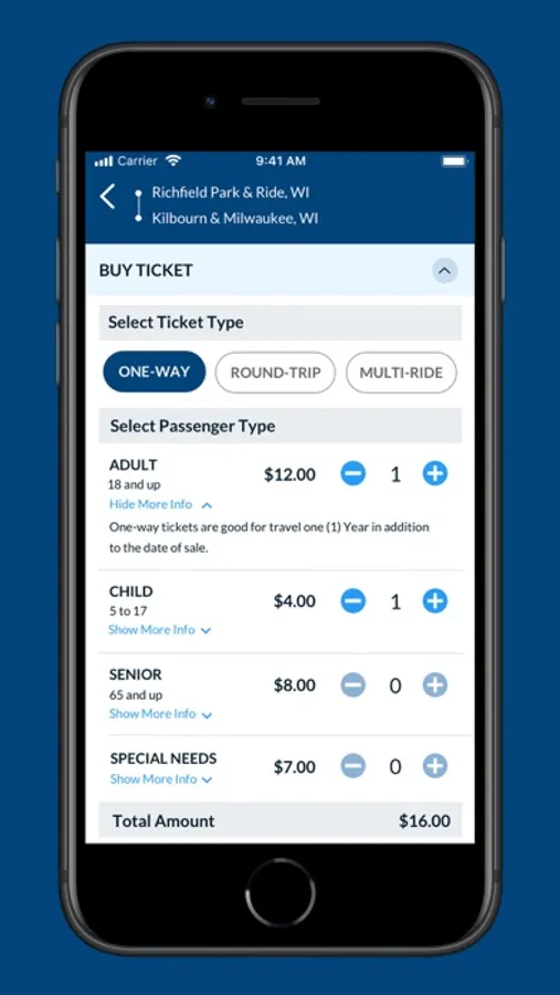 Washington County Commuter Express offers a convenient, stress free commute with our express deluxe motor-coach service operating weekdays from Washington County to Milwaukee County. Use our app to purchase your ticket or review bus schedules. Easily store your ticket and present it to the driver to scan upon boarding for a truly contactless experience. Save time at the stop and take the hassle out of travel by purchasing either single tickets or multi-ride tickets.