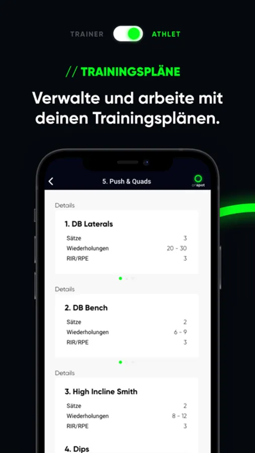 - Individuelle Trainingspläne – wählbare Split-Varianten, frei änderbar