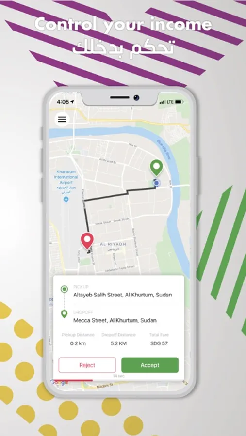 Download the app now and start taking rides requests anywhere in Capital Khartoum.