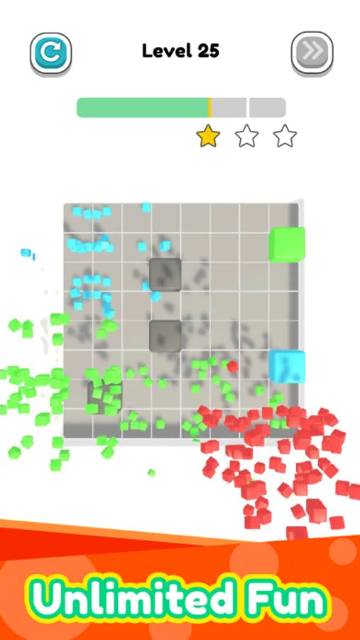 Swipe to move all the blocks and match each other, clean the level while breaking cubes.Easy control, unlimited enjoy.