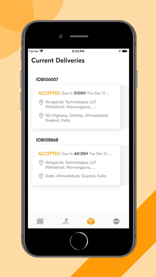 —> This section show list of accepted jobs by provider. The status of job will be change according when provider pickup - deliver courier.
