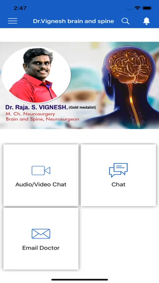 The Dr Vignesh brain and spine App for Patients, whose service is a part of the Purple Health Platform (DoctorsCabin Health Technologies Pvt Ltd), lets patients use telemedicine and better connect to doctors. Features include video-appointments, chat-messaging, appointment booking and more. Get your medical questions answered, all from the comfort of your home and office