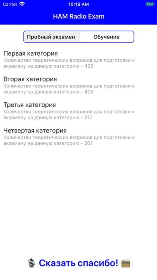 For the first time in Russian AppStore you have an opportunity to prepare for the amateur radio qualification exam and to take a practice exam.
