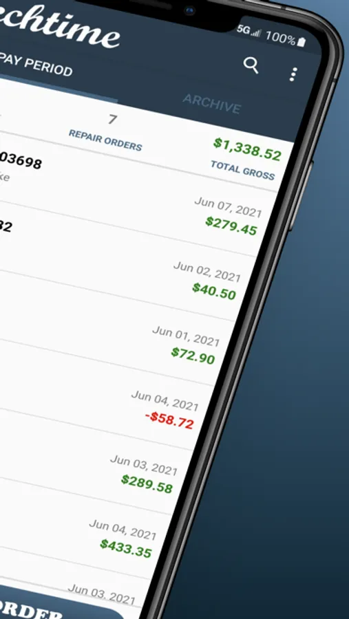 • Archive: Store past pay periods and repair orders in the archive to later revisit if a back flag becomes an issue.