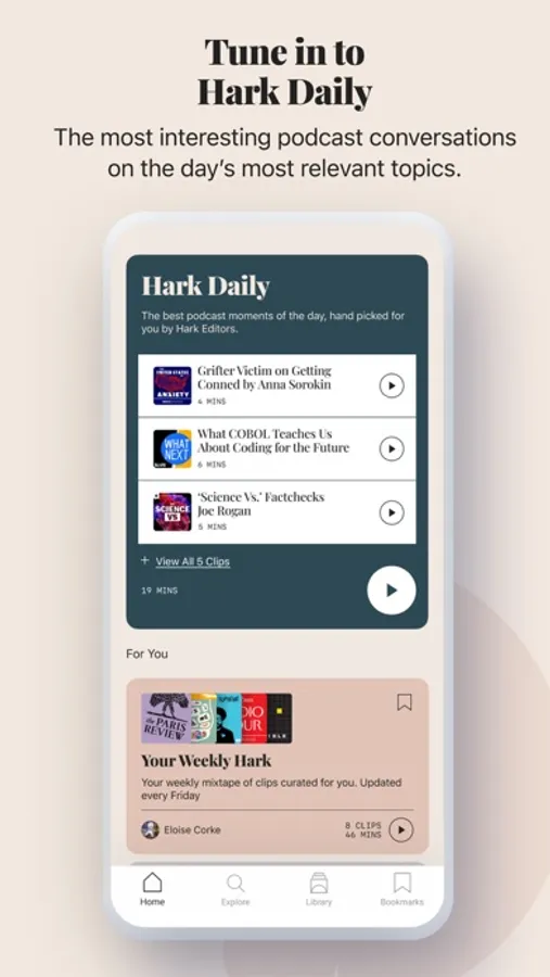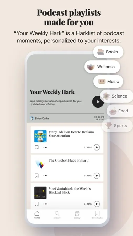 Every week, you’ll receive “Your Weekly Hark” - a Harklist of podcast moments curated just for you.