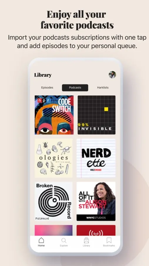 All in a beautiful free app curated by people who love podcasts too.