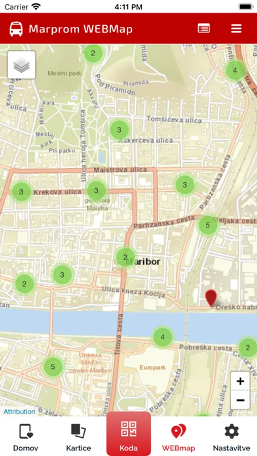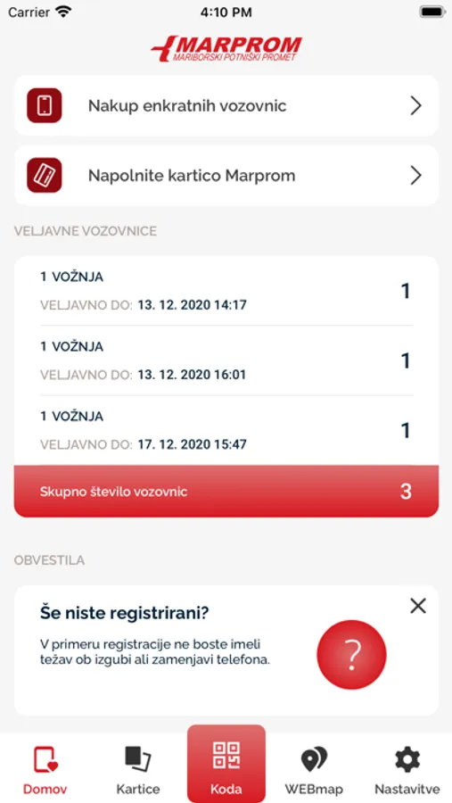 - Validacija na čitalnikih vozovnic s prikazano kodo QR na mobilni napravi