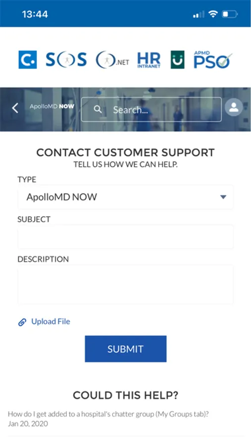 Mobile app for ApolloMD NOW (a provider community portal). It's one stop shop for all things Apollo. You can access provider, SOS, ApolloMD.net. Update your contact info, education, licenses. Post on chatter to providers at your hospitals.