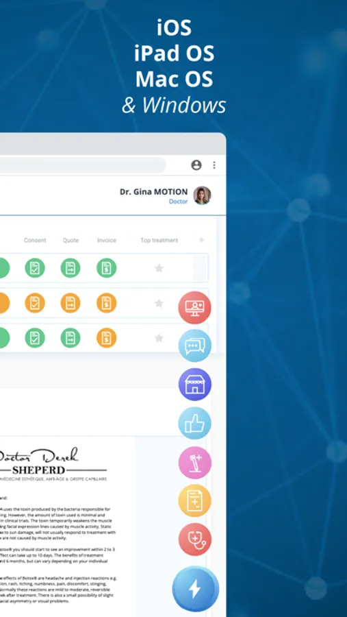 • Add collaborators (doctor, assistant, administrator) and manage their permissions.