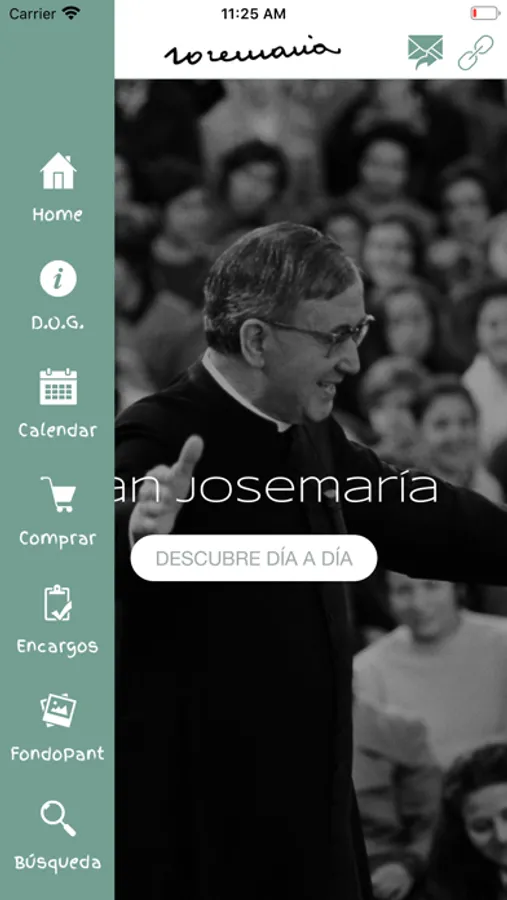 D.O.G. es el resultado de una labor minuciosa -de archivo- para ir ordenando, día a día, la historia que vivió San Josemaría Escrivá de Balaguer con las primeras y los primeros fieles del Opus Dei. Con ella, podrás seguir paso a paso los distintos eventos. Pero en lugar de seguir el orden cronológico que dicta el paso del tiempo, lo harás siguiendo el calendario de casa día. Desde ahí, podrás reconstruir gran parte de la historia de la Obra. Hay un evento para cada día del año y, en cada uno, encontrarás lo que ocurrió "tal día como hoy" del año "x" , con lo que te harás cargo de cómo se desarrollaron los sucesos. El evento, además, irá acompañado de una fotografía que ilustrará -con imágenes gráficas- muchas de las aventuras que vivió San Josemaría con los primeros seguidores, asid como de algún link por si se quiere profundizar en los detalles de ese evento.