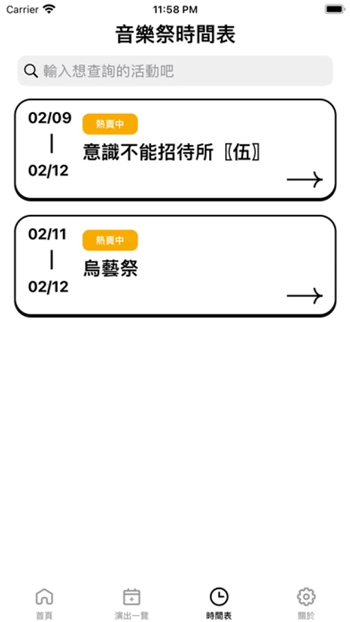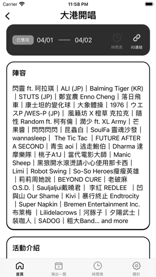 Collecting each music festival and live house information in TW, it could get price and information easily, provide the time table during festival to watch bands on time.