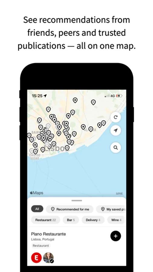 Find recommendations from people you know and trust: follow your friends, your favourite publications, and some of the biggest names in food to see their favourite places to eat and drink appear on your map.