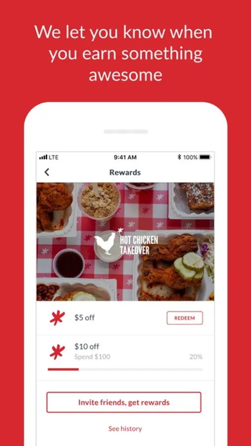 Download the Hot Chicken Takekover app to get rewards and to redeem them with every order. Here’s how it works:
