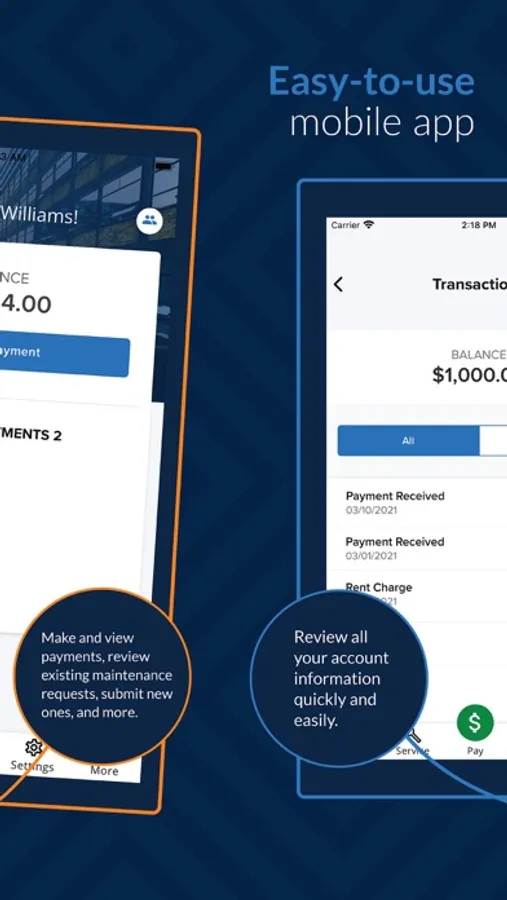 • Pay your rent and other fees, view transactions, and set up auto-pay to streamline your future payments