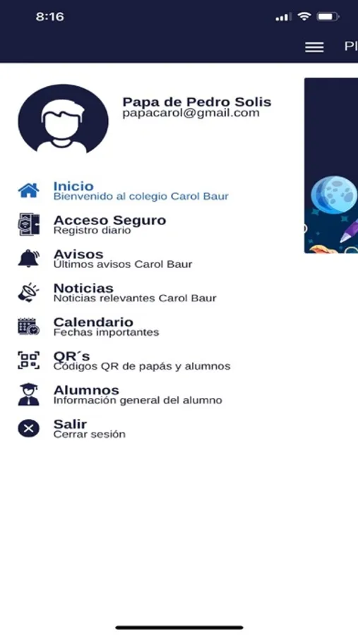 Cabe mencionar que únicamente los Padres de Familia del colegio podrán descargar y utilizar la aplicación ya que el método de validación será mediante el correo registrado en el Colegio.