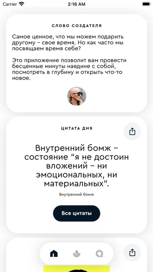Если включить уведомления в приложении, вам будет приходить одна цитата на экран телефона каждый день.