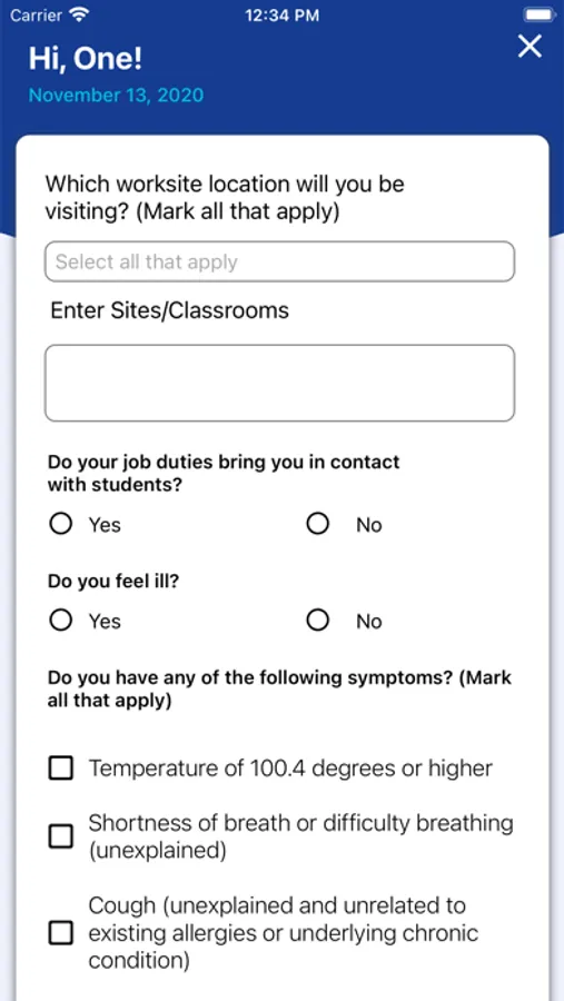 Use the Schools Self Screening App to help fight the spread of COVID-19 by having your employees submit a self screening before entering the workplace.
