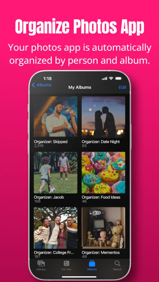 ▹ If you cancel, your organized images are still organized in the Apple Photos albums created by Photo Organizer; however, they cannot be accessed through the Photo Organizer app. If you resubscribe, Photo Organizer can re-sync any videos and photos you saved to your account, as long as they are still on your phone and you have not deleted your Photo Organizer account.