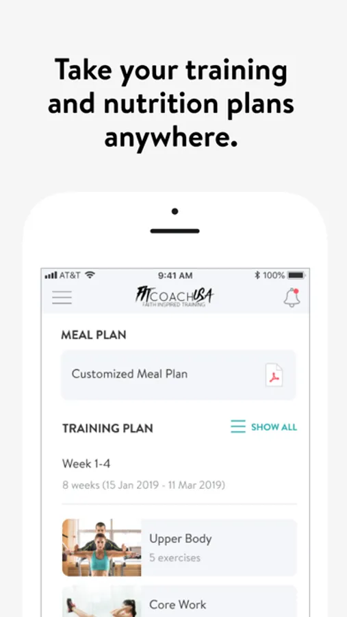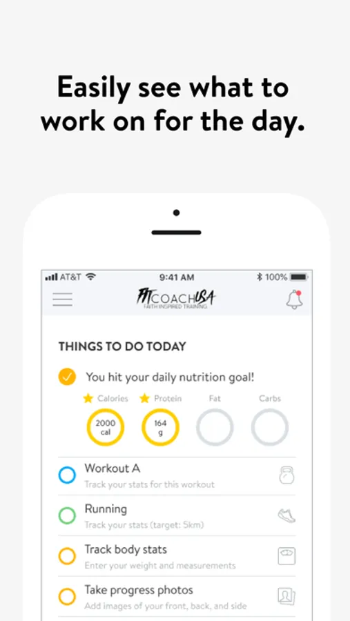 With the FIT Coach USA App, you can start receiving workouts, tracking your cardio and meals, measuring results, and achieving your fitness goals, all with the help of your personal trainer.