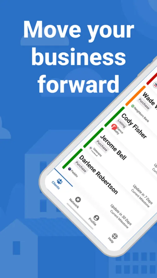- Manage your clients, and track progress with realty milestones.
