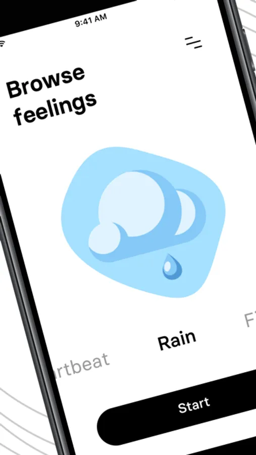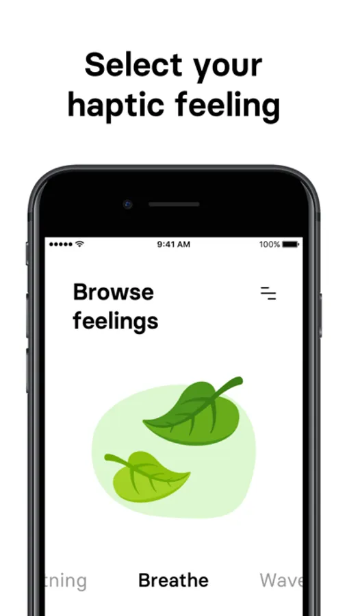 Simply place your phone on your chest, or hold it in your hand, select a feeling and a duration, then close your eyes and focus on the haptic feeling.