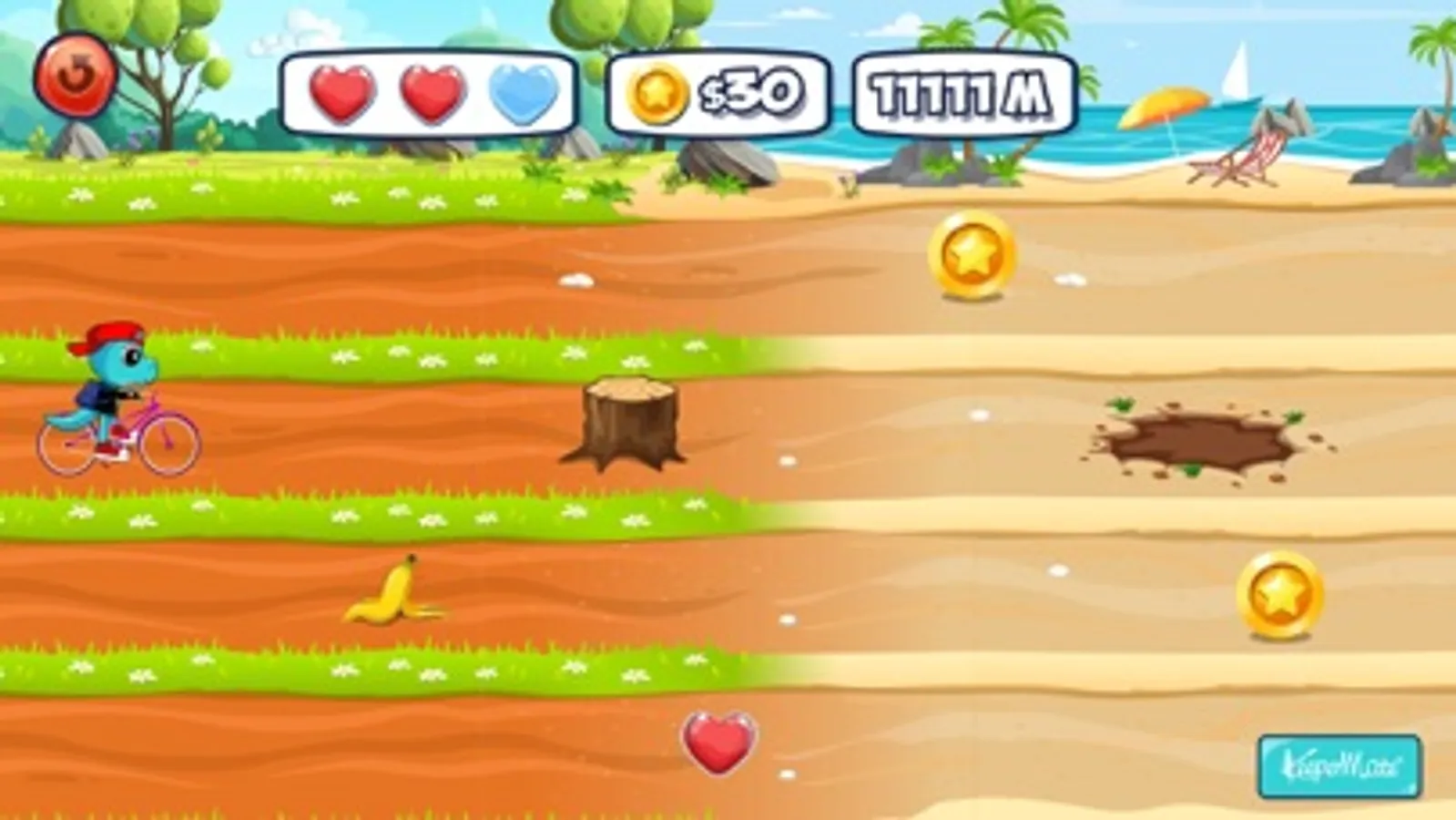 ¿Qué tal participar en una carrera de obstáculos que los lleve a recorrer espacios tan interesantes como la granja, la playa o el bosque encantado? Juntos podrán ir recogiendo monedas, ganar vidas y escudos mientras visitan mundos llenos de diversión. Eso sí, deberán prestar mucha atención, porque alguien tiró una cáscara de banano por ahí…