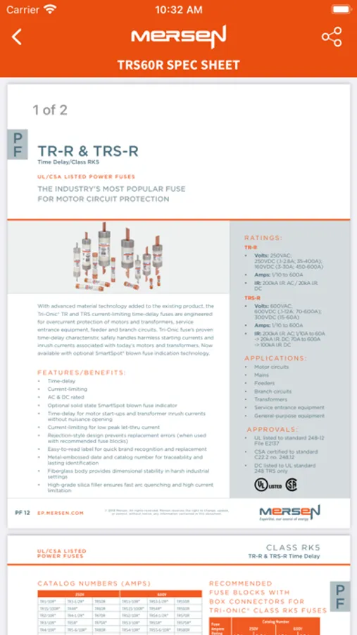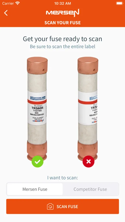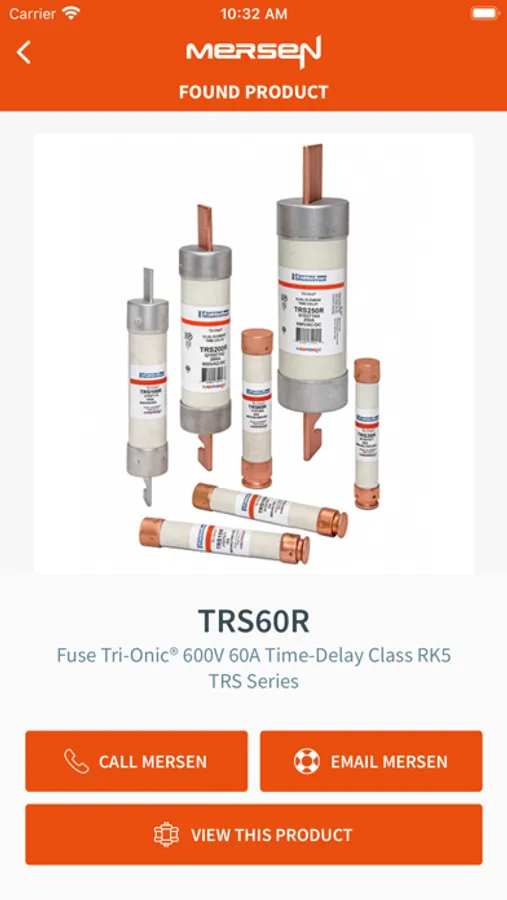 This industry-first application gives the option to search the Mersen database via text or photo recognition. Simply use a mobile device to scan the fuse, fuse holder, switch or surge device and the application will recognize the competitive product and return a Mersen cross referenced part number. The App will then direct you to the nearest sales office for product help.