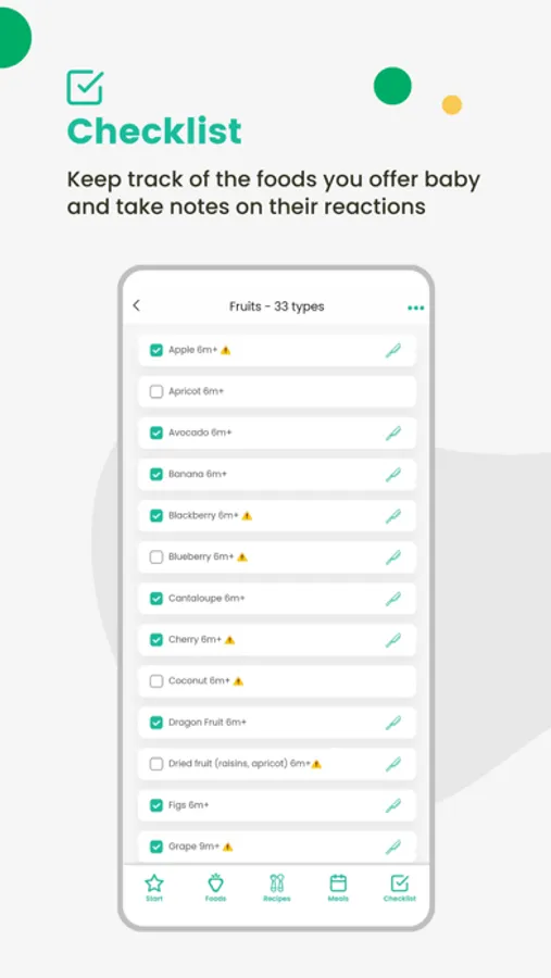 Foods Checklist (Tracker): baby's first foods checklist