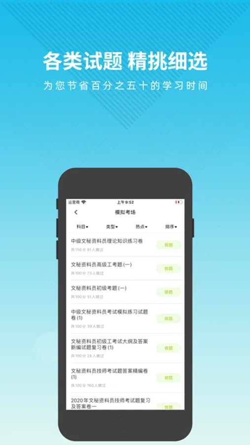 文秘资料员题库APP是一个针对文秘资料员考试的题库软件 ,涵盖了该考试热点、难点和常考点的考试模拟题库,是您学习和拿高分的好帮手。
