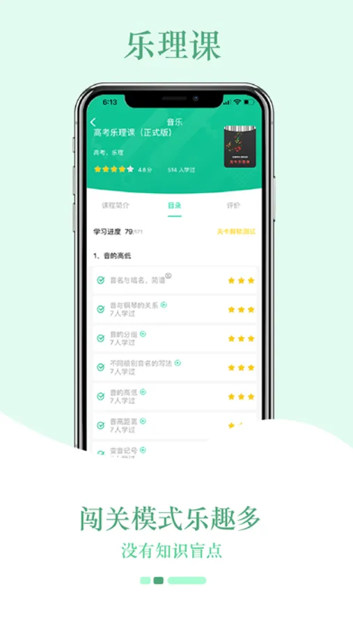 包含乐理课程、视唱课程、练耳课程。课程内容根据高考考点进行设计,自学完成三门课程后,可以达到各类高校、艺考、联考、音乐学院考试入学水平,识谱扒谱唱谱也是轻松可以做到,并且能够学会基础的作曲技能。