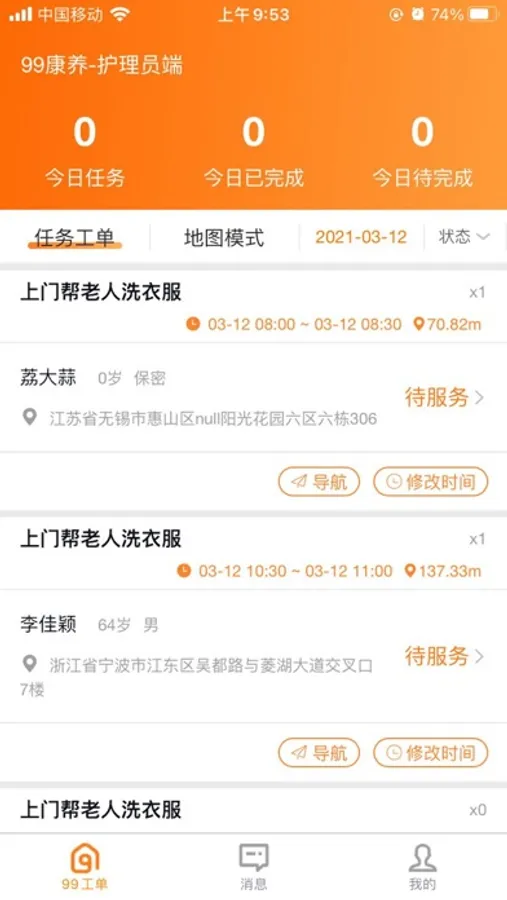 99康养服务人员APP,帮助服务人员快速完成服务任务。