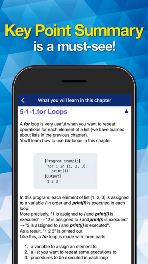 Don't miss "What you will learn in this chapter," which explains the basics in an easy-to-understand manner using code examples in this app.