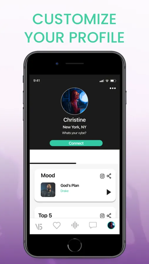 A social platform where you can connect with individuals all around the country who have the same music taste. You have the freedom to use Vybe as a way to create new relationships, find new music, or just simply show off your amazing music taste. Add your Top 5 and enter a world of meaningful connections.