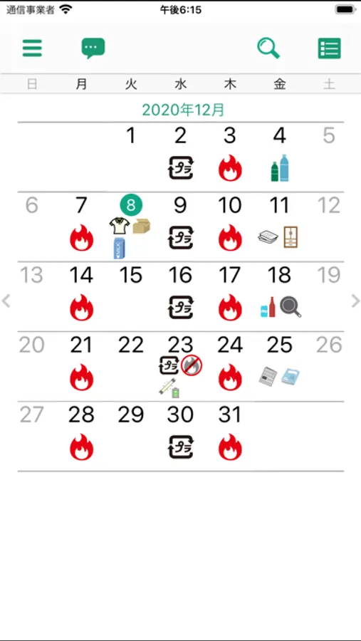 今日と明日、週ごと、月ごとの3パターンによるごみ収集日程を一つの画面ですぐに確認することができます。