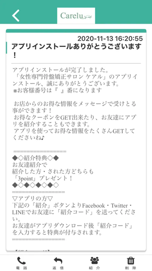 ケアルのアプリをSNSを通じてお友達に紹介する事ができます。
